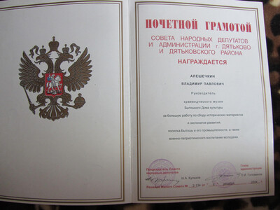 В процессе деятельности клуба «Дятьковский краевед» к 170-летию Бытошского храма Покрова в ДК была открыта художественная музейная выставка. Бытошане ознакомились с архивными документами, фотографиями, изделиями, выпускаемыми заводами середины XVII–XIX веков, с предметами быта этой эпохи, узнали историю Храма Покрова. Я дал интервью Российским телеканалам «Союз» и НТВ. Конечно, это было приятным событием, как для меня, так и бытошан.
